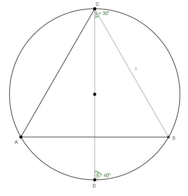 Consideriamo un triangolo equilatero ABC, di lato l, inscritto in una circonferenza di raggio r.