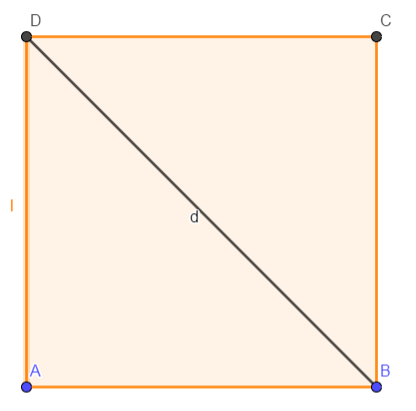Consideriamo un quadrato il cui lato misura l e indichiamo con d la misura della sua diagonale.